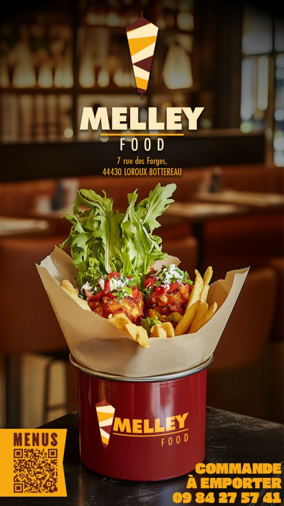 Implanté en périphérie de Nantes, Melley Food est un snack premium qui revisite la restauration rapide avec générosité et exigence. Burgers gourmands, kebabs savoureux, tacos bien garnis et recettes préparées à la commande composent une offre appréciée pour sa qualité et son excellent rapport qualité-prix. Plébiscité pour son accueil chaleureux, son service rapide et son ambiance conviviale, Melley Food s’impose comme une adresse incontournable pour un repas gourmand et efficace aux portes de Nantes.